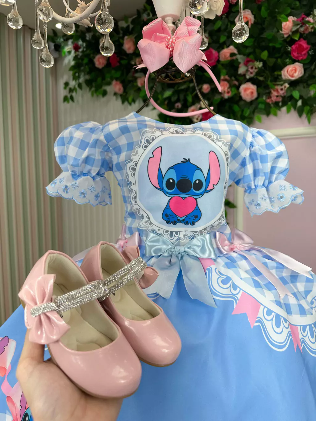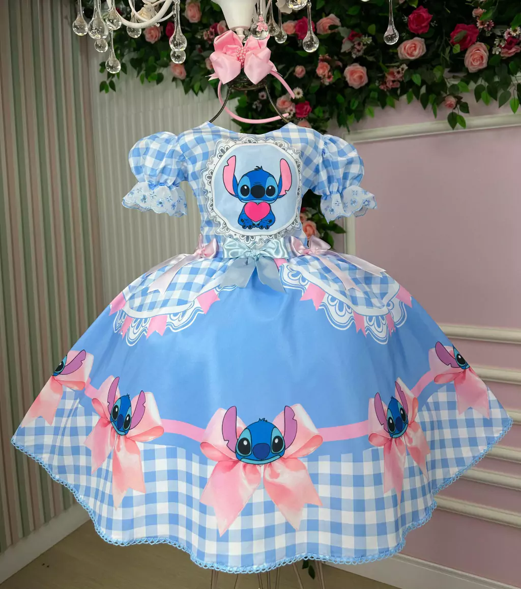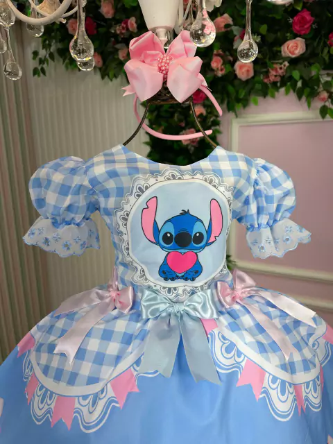 🎀 Vestido Junino Temático – Lilo & Stitch | Modelo Caipira com Estilo!