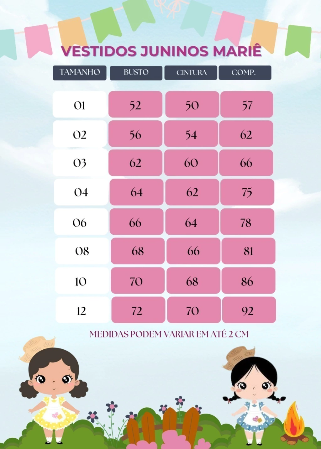 📏 As medidas podem variar em até 4cm